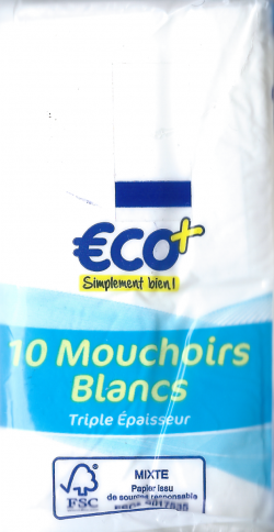10 mouchoirs blancs triple epaisseur